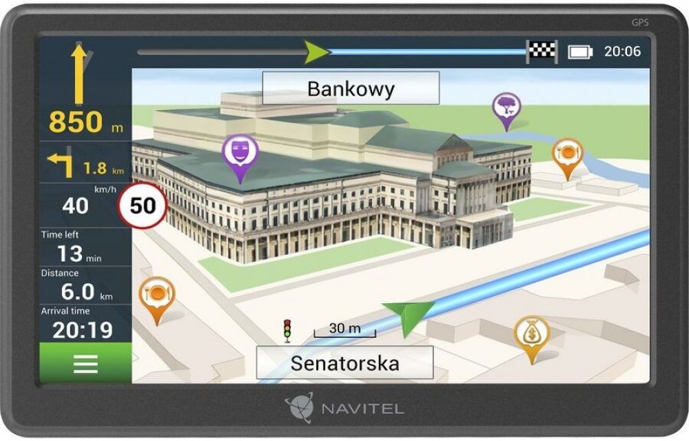 Moderní navigace NAVITEL E707 MAGNETIC je moderní automobilová GPS navigace s magnetickým držákem a kapacitním multidotykovým displejem. Zařízení má ostrý 7palcový TFT displej. Snadné použití NAVITEL E707 MAGNETIC má kapacitní multidotykový displej, díky kterému je práce jednodušší a pohodlnější. Uživatel může měnit přiblížit/oddálit mapu, vytvářet trasy a konfigurovat navigaci jednoduchým dotykem...