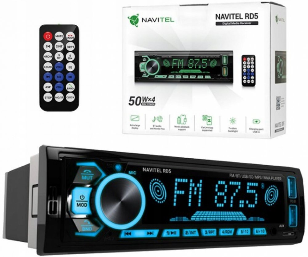 Vychutnejte si AM/FM rádio, nebo připojte svůj chytrý telefon a přehrávejte svou oblíbenou hudbu i na cestách. Autorádio RD5 nabízí jak AUX a USB vstupy, tak i Bluetooth připojení.