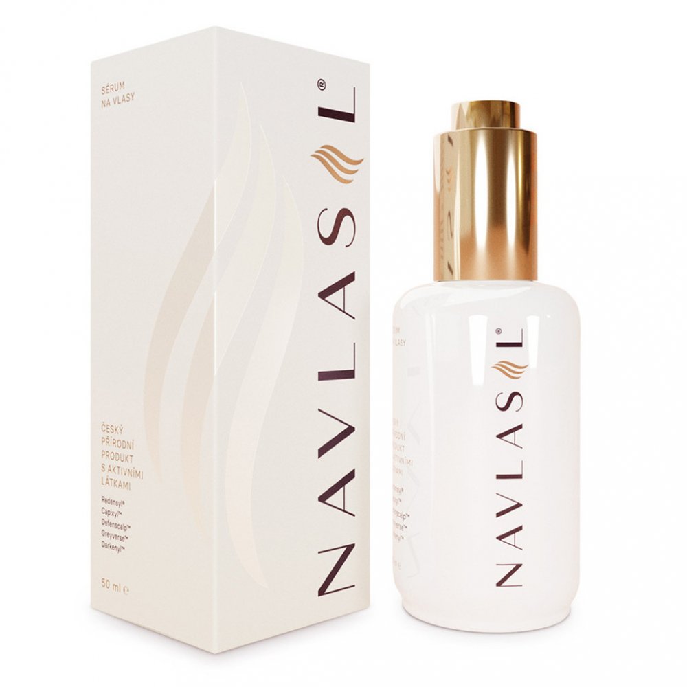 NAVLASIL je luxusní vlasové sérum, které kombinuje nejmodernější biotechnologické ingredience pro obnovu přirozené barvy, hustoty a vitality vlasů. Podporuje růst, vyživuje vlasové folikuly a chrání pokožku hlavy před podrážděním i tvorbou lupů.