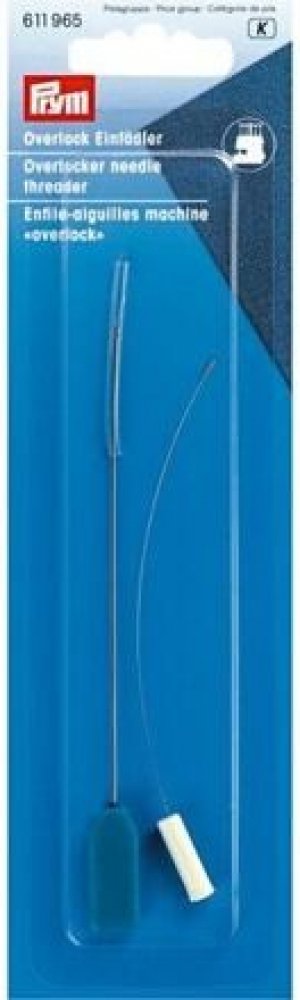 Navlékač jehel pro overlock - PRYM Tato navlékací pomůcka od Prym je speciálně navržena pro navlékání overlockových šicích strojů. Sada se skládá z navlékače pro horní a spodní smyčkovač a dalšího navlékače na jehly. Jemně zakřivený drát z pružinové oceli s bílou plastovou rukojetí a háčkem se nejprve protáhne spodním chapačem a nit se upne do háčku. To znamená, že nit lze snadno protáhnout okem smyčkovače. S horním chapadlem se nyní manipuluje stejným způsobem. Navlékač jehly funguje přesně jako běžný navlékač šicí jehly, ale má dlouhou násadu vyrobenou z drátu z pružinové oceli a rukojeť z modrého plastu pro optimální manipulaci. Sada obsahuje: 2 nástroje pro navlékání