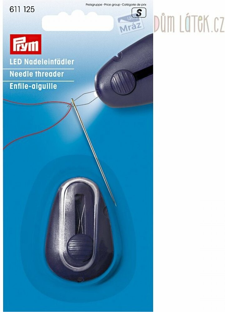 Navlékač jehel s LED světlem, zabudovanou mini čepelí na odříznutí nitě a očkem pro zavěšení na krk. Obsahuje baterii CR2032(3V), kterou nelze vyměnit, ale její životnost je až 30 000 hodin při běžném používání.