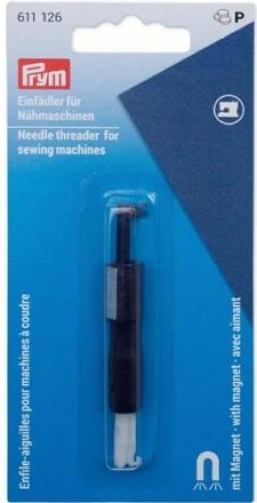 Navlékač nitě do jehly šicího stroje (ruční) - PRYM Praktický navlékač, který díky svému mechanismu usnadňuje zdlouhavé navlékání nitě do jehly šicího stroje. Nit jednoduše vložíte do navlékače, navlékač nasadíte na jehlu a mírným tlakem proti jehle se z navlékače vysune kovový plátek, který prostrčí nit jehlou. Vytvořenou smyčku povytáhnete háčkem na navlékači a nit protáhnete. Navlékač je vybaven také magnetem, který Vám pomůže snadno zvednout jehlu z pracovního stolu a také držákem jehly, díky kterému snadno vyměníte jehlu v šicím stroji.