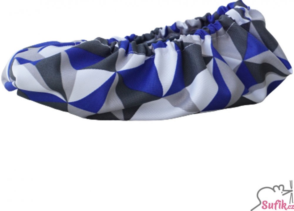 Jsou ušity z nepromokavé kočárkoviny. Špička je useknutá a pata naopak přizpůsobena tvarem i vyšší a širší zimní botě. Vzadu na patě je ponechána dírka na regulaci gumy. Takže pokud jsou moc volné, vytáhněte gumu a uzlíkem utáhněte.