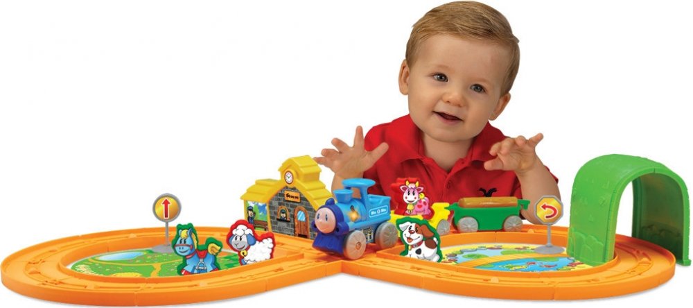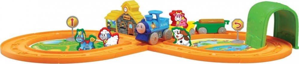 Vlaková sada pro nejmenší děti od 1 roku. Vláček je jako dělaný pro malé ručičky. Sada je pro větší potěšení z jízdy vybaven světelnými a 30ti zvukovými efekty. Součástí balení jsou dva nákladní vagóny.