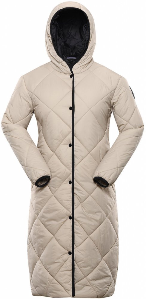 Dámský městský kabát ZARGA od značky NAX je vyrobený z vodoodpudivého, prodyšného a větruodolného materiálu. Tento moderní kabát vás ochrání v nepříznivém počasí, při nošení ve městě a v přírodě. Barevná kombinace doplněná o prošívaný vzhled a nášivku působí velice moderně. Pásek v pase a zapínání na knoflíky je též součástí výrobku. Složení materiálu: 100% nylon.