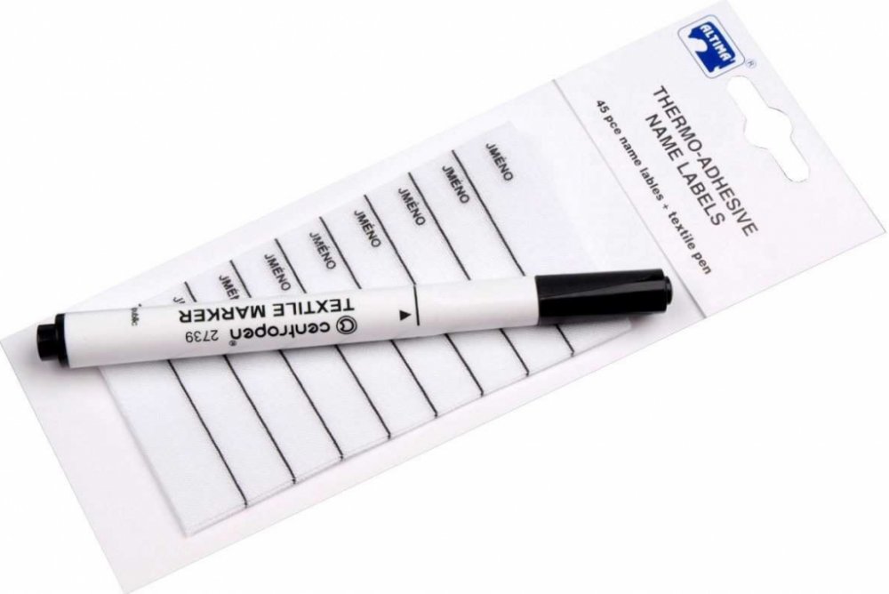 Praktické nažehlovací štítky, které usnadní označování oblečení, školních potřeb či jiných textilií. V balení naleznete 45 štítků a popisovač, se kterým snadno napíšete jména, poznámky či jiné označení. Ideální pro děti do školy, tábory nebo do domácnosti. Štítky jsou snadno aplikovatelné a odolné vůči praní.