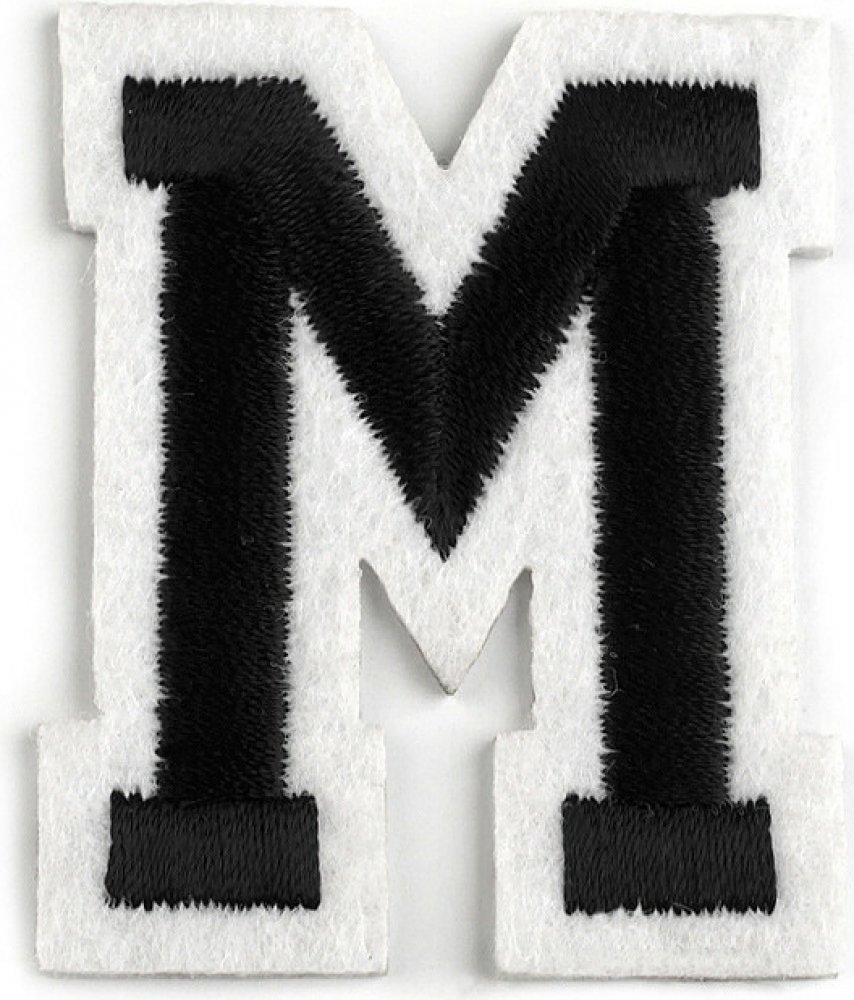 Díky nažehlovačkám s písmeny si můžete sestavit svůj vlastní originální nápis. [Písmeno má černou středovou část vyšívanou.] [Nažehlovačkami můžete oživit oblečení.