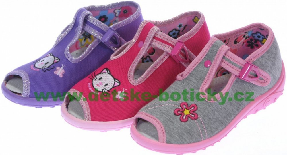 Textilní obuv vybavená stélkou. Perforovaná podešev.