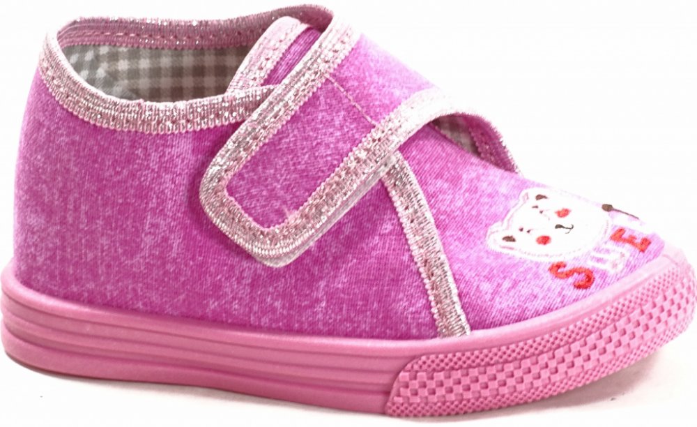 Dívčí papučky s jednoduchým upínacím páskem na suchý zip.