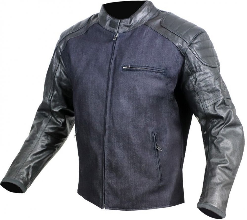 Pánská bunda na moto s koženými rukávy.