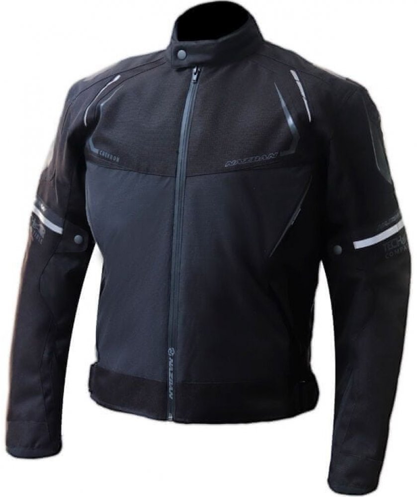 VÝHODNÝ SET: Při nákupu bundy Nazran Thron Tech-Air Compatible a elektronicky řízeného airbagu Tech-Air 5 najednou, získáváte 10% slevu! Sleva vám bude odečtena na faktuře. Pro bližší informace kontaktujte zákaznickou podporu Bikers Crown. Vrchní materiál: - Polyester Maxtex 600D, Polyester Maxtex 300D, Ribstop Polyester, Samtex Polyester TECH-AIR® COMPATIBLE - ergonomicky navrhnuto pro nošení s airbagovou vestou Tech-Air® 5 CHEVROON ARH 5.0 - originální speciální příprava na zádech pro Alpinestars Tech-Air® 5 vestu, které zajistí maximální pohodlí a funkčnost - zapsán do rejstříku průmyslových vzorů společenství EU vyvinutého společností Bikers Crown Podšívka: - Recyklovaný polyester + 3D Mesh Vnitřní membrána: - nepromokavá, větru-vzdorná a prodyšná membrána GT-150 HYDRO: (nepromokavost / vzdušnost) 10 000 g/m2/24hrs - Nepromokavý hlavní přední zip Chrániče: - součástí vybavení jsou Sas-Tec homologované CE level 2 chrániče loktů a ramen, příprava na zádový chránič Viditelnost: - reflexní prvky na hrudi, zádech a ramenech Ventilace: - 2 přední ventilační kapsy Komfort: - Strečové panely nad lokty a za rameny pro zvýšené pohodlí - Upínací pásek pro úpravu obvodu rukávů - Stahovací pásek v pase Kapsy: - 2 větší přední kapsy na zip - 2 vnitřní kapsy na mobil a doklady - Vnitřní mesh kapsa s čistítkem na plexi - ICE–pouzdro s identifikačními informacemi pro záchranáře v případě nehody - Zip na připnutí ke kalhotám Bikers Crown obdržel pro svoji značku Nazran Motorcycle Fashion jako první a jediný sériový výrobce na světě souhlas od firmy Alpinestars pro používání airbagových systémů Tech-Air 5 do své výroby oblečení pro běžné motorkáře. Celý projekt a specifický vývoj oblečení trval velmi dlouho a byl prováděn souběžně s vývojem Tech-Air 5. Schválené výrobky ve spolupráci jsou označeny logem Tech air Compatible.
