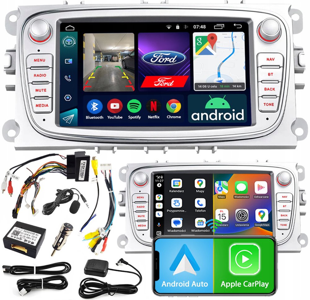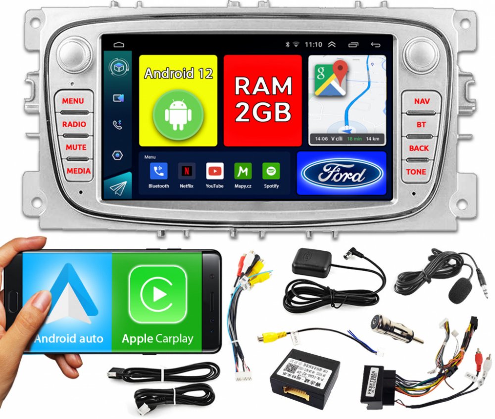 Autorádio NCS RS-406B, systém Android 12, 7" obrazovka, Android Auto, Apple CarPlay pro Ford FOCUS 2004-2011.