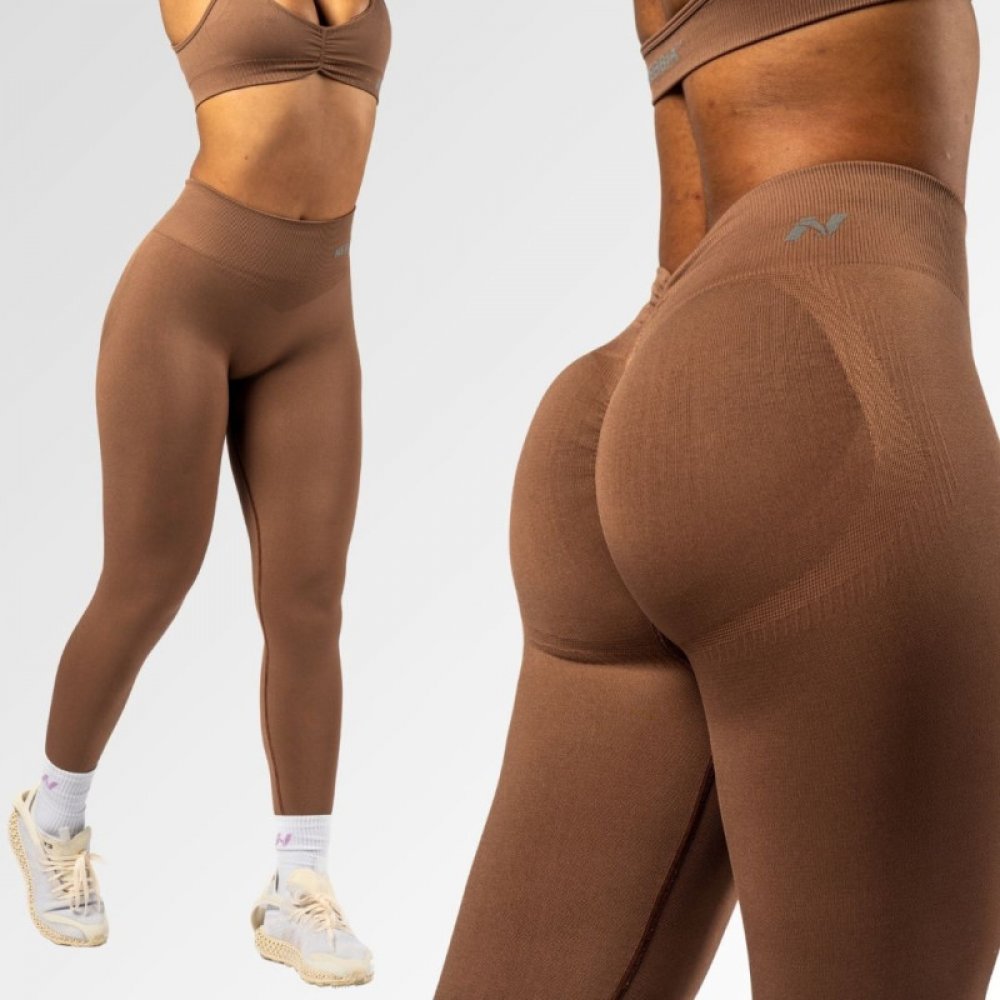 Nebbia Bezešvé legíny s vysokým pasem MAXIMUM PUSH-UP 302 brown