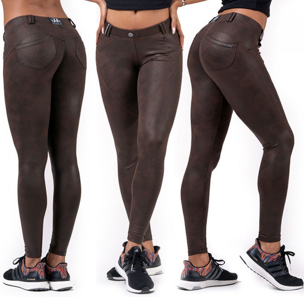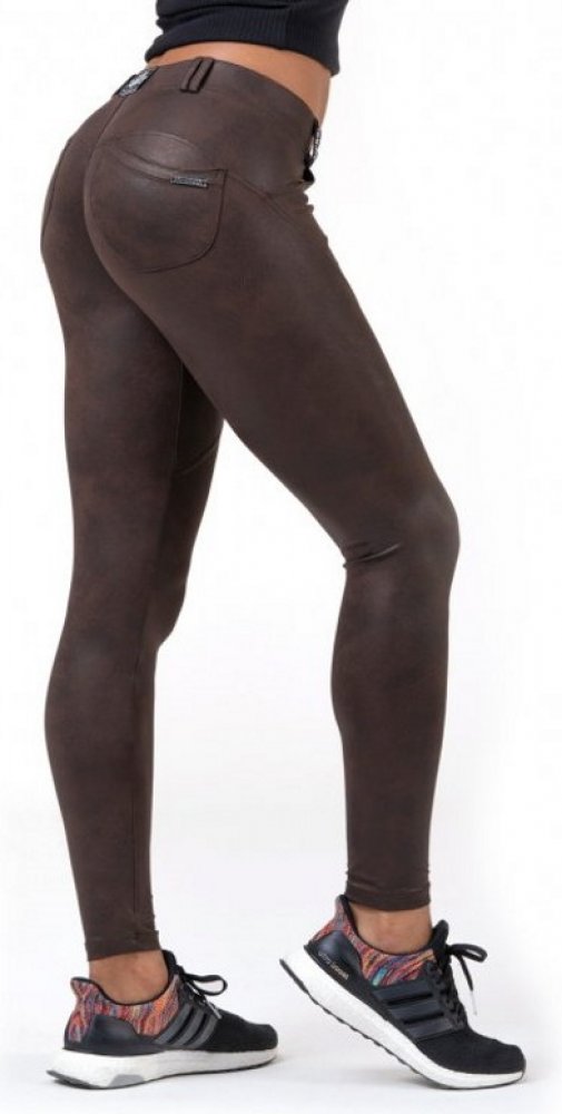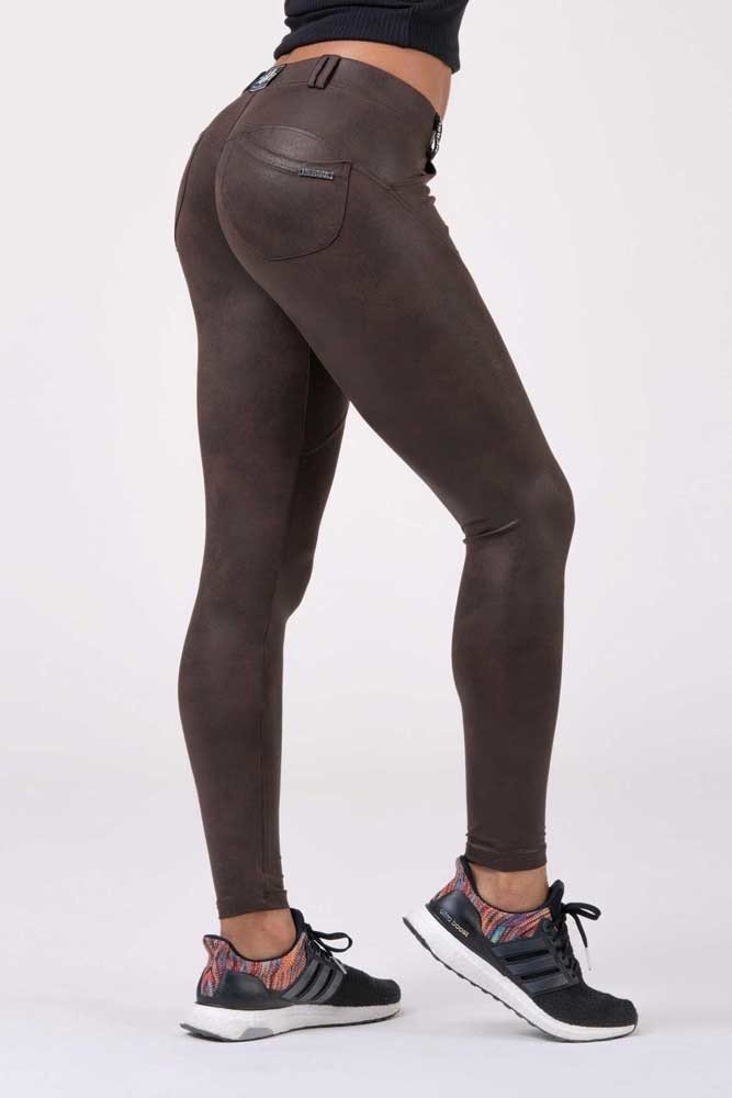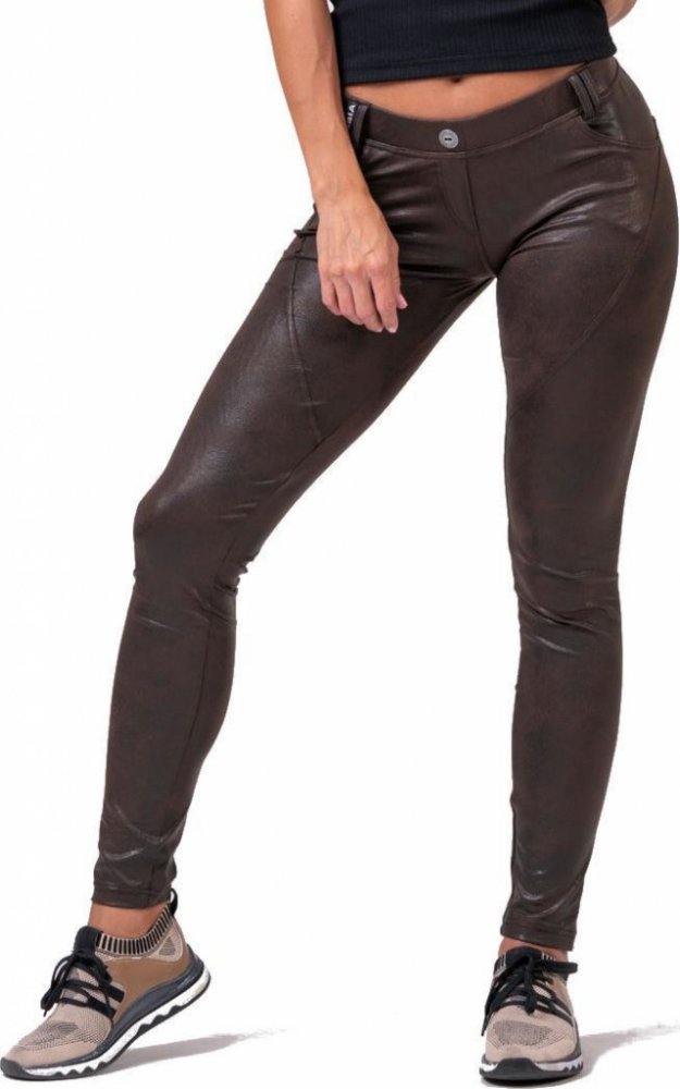 Nebbia Leather Look Bubble Butt kalhoty 538 hnědé