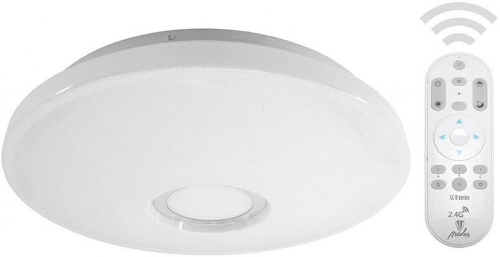 NEDES LC814U LED stropní svítidlo na dálkové ovládání, které při rozsvícení zdobí jemné třpytky - součástí svítidla je led zdroj 150W, 2700-6500K, 10800lm, IP20. Zapínání je možné pomocí klasického vypínače (pamatuje si poslední nastavení) resp. pomocí dálkového ovládání (možnost měnit: barvu světla, intenzitu, noční režim - 3 barvy, časovač). Je možné párovat víc svítidel na jeden dálkový ovladač...