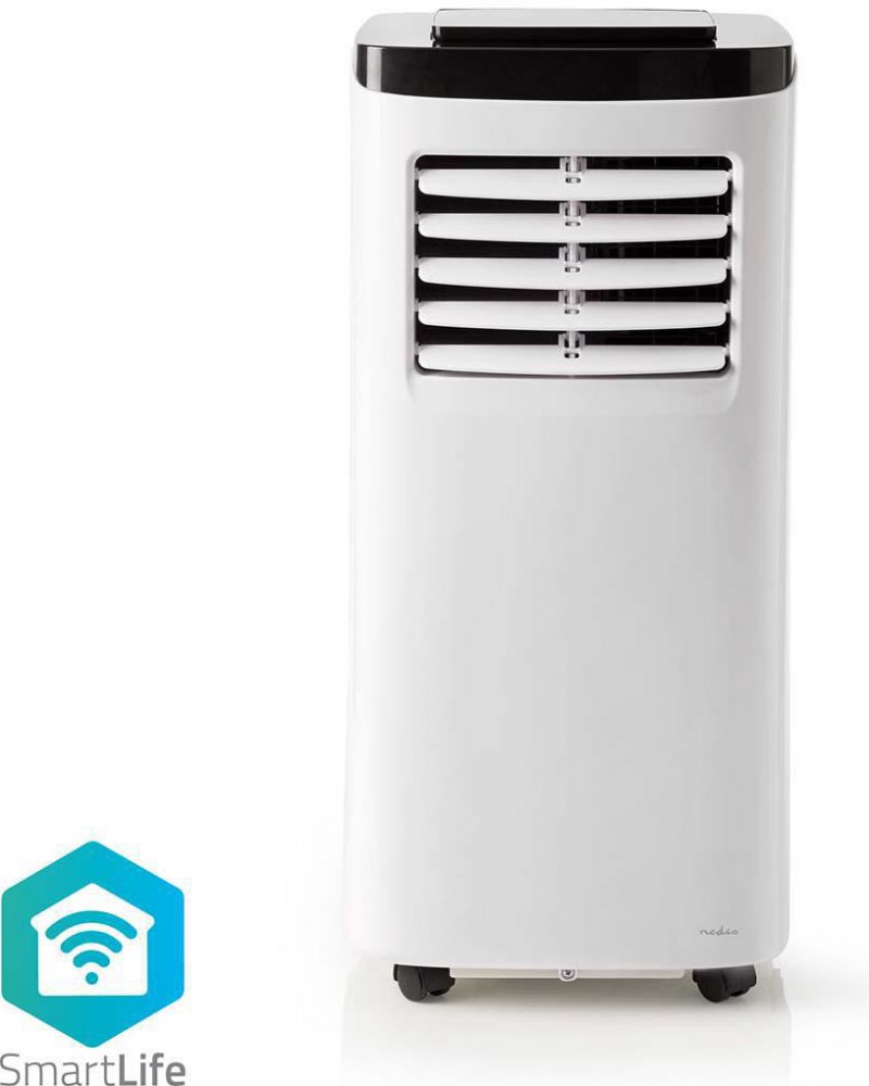 Mobilní klimatizace Nedis SmartLife 3 v 1 (chlazení, větrání a odvlhčování) s chladicím výkonem 7000 BTU a možností inteligentního ovládání je vynikající způsob ochlazení vašeho domu nebo bytu během horkých letních dnů a nocí. Tato klimatizace, jejíž provoz je energeticky úsporný, bez problémů zchladí místnosti až do 60 m³. Díky systému Nedis SmartLife lze klimatizace prostřednictvím bezdrátového připojení zapojit do chytré domácnosti a jednoduše ji ovládat pomocí stejnojmenné aplikace pro smartphone. Kromě toho lze měnit její nastavení pomocí hlasových asistentů jako Google Assistant a Amazon Alexa nebo dálkového ovládání. Součástí dodávky je vzduchová hadice o průměru 150 mm pro odvod teplého vzduchu a utěsňovací sada AC pro okna, ke které lze hadice snadno připojit a odvádět tak teplý vzduch mimo objekt. Klimatizace je vybavena 24hodinovým časovačem, funkcí spánku a indikátorem plné nádrže.