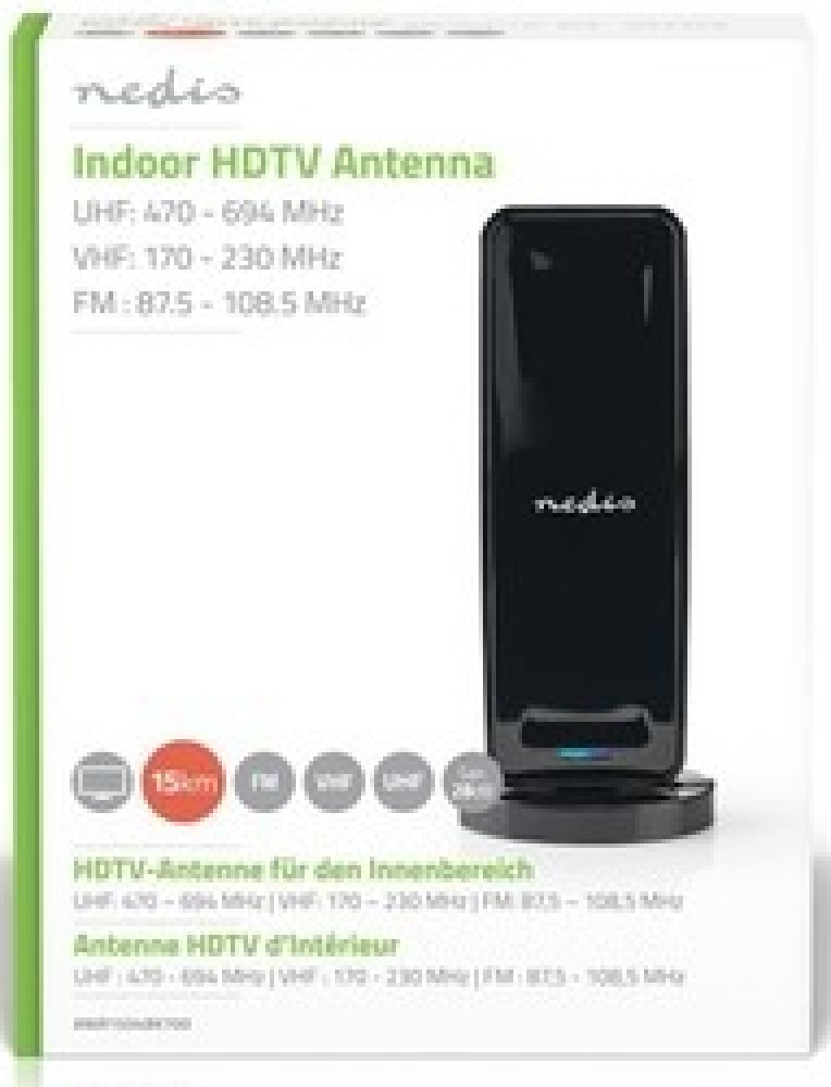 Tato pokojová Nedis DVB-T/T2 anténa vám zajistí stabilní příjem volně vysílaných a placených (pokud jste předplatitelem) kanálů a rádiového FM signálu. Tato kompaktní stylová anténa zapadne do jakéhokoli typu interiéru, aniž by příliš rušila.