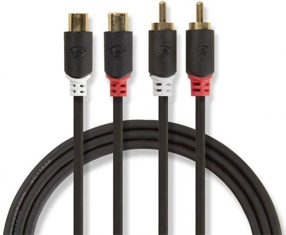 Značkový Nedis® prodlužovací audio kabel s konektory 2 x cinch (RCA) zástrčka na 2 x cinch (RCA) zásuvka. Vhodný např. k prodloužení stávajícího propojovacího kabelu od DVD přehrávače k televizoru. Délka 2 m.