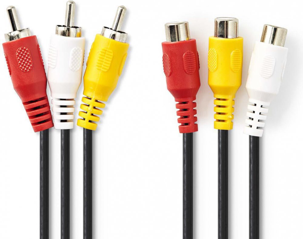 Nedis® prodlužovací audio/video kompozitní kabel s konektory 3 x CINCH (RCA) zástrčka na 3 x CINCH (RCA) zásuvka. Vhodný např. k prodloužení dosahu kabelu videorekordéru, herní konzole nebo set-top boxu k televizoru. Délka 2 m.