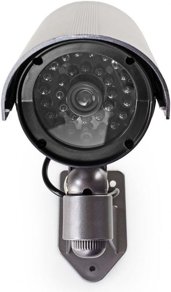 Atrapa venkovní kamery nabízí profesionální design. Vyznačuje se vestavěnou blikající LED a velmi realisticky vypadající falešnou infračervenou LED, což pomáhá zabránit vloupání. Je napájena dvěma AA bateriemi a lze ji snadno namontovat pomocí dodané konzole.