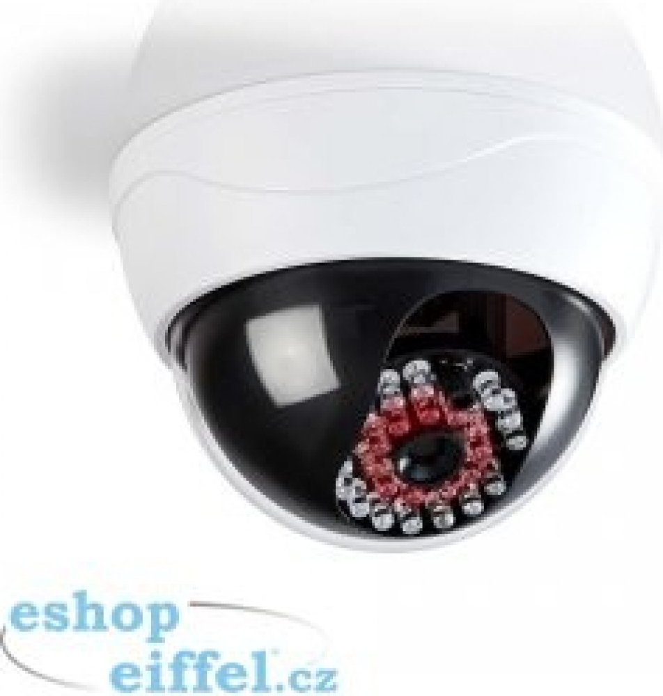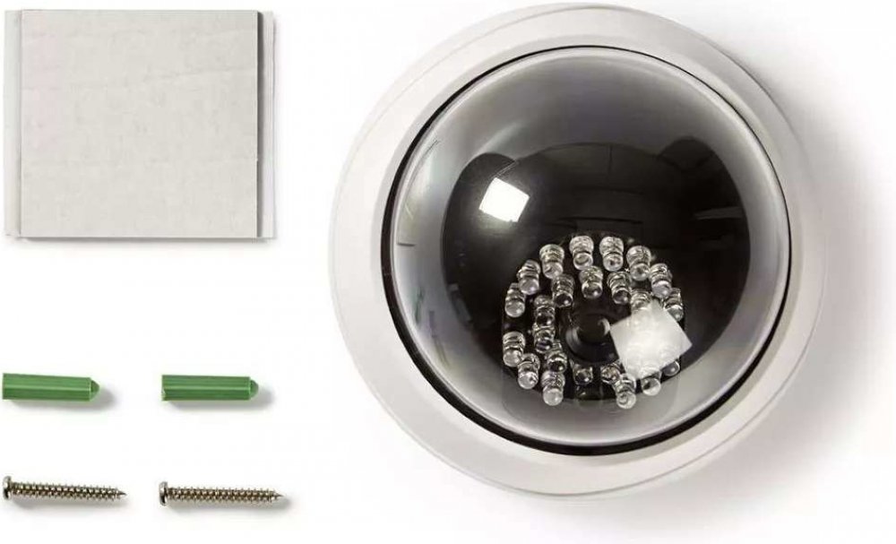 Atrapa bezpečnostní kamery značky Nedis je dokonalou kopií skutečné kopulovité kamery. Díky svému realistickému designu včetně blikající LED diody odradí nezvané návštěvníky a potenciální zloděje. Kameru lze snadno namontovat pomocí přiložené konzole. Je určena k použití v interiéru. Je napájena 2 bateriemi AA, které nejsou součástí balení.
