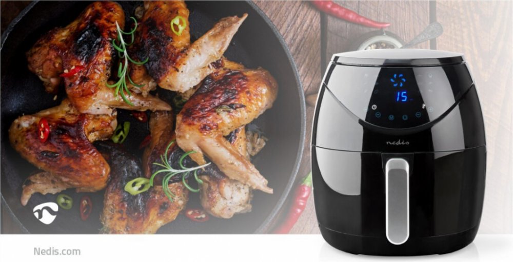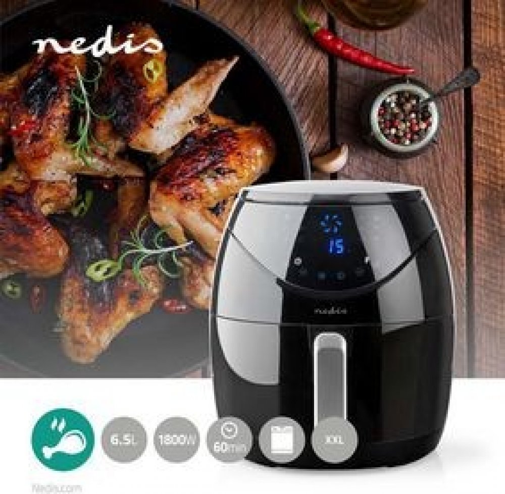 Nedis černé digitální pro 6+ osob pro běžné kuchyňské linky LCD 6.5 l 1800 W 35.2 x 31.7 x 31.7 cm 5.2 kg 0.8 m 80 - 200 °C