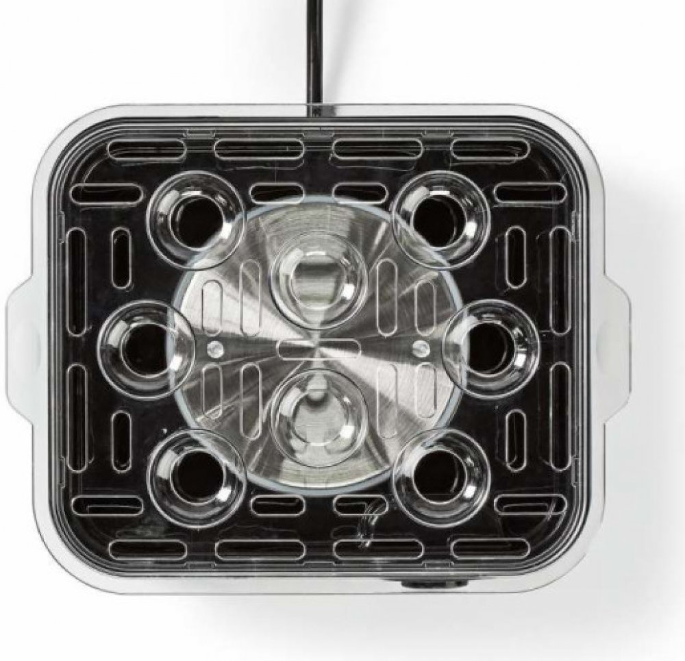 S tímto vařičem na vejce Nedis získáte za okamžik dokonale uvařená vejce na tvrdo, na měkko nebo na hniličku - dokonce i během hektického rána, nebo i když jste v kuchyni nováčkem. Stačí přidat správné množství vody pomocí dodané konvice. Do každého vejce propíchněte integrovaným propichovátkem na vejce na zadní straně konvice dírku, aby vejce během vaření nepopraskal...