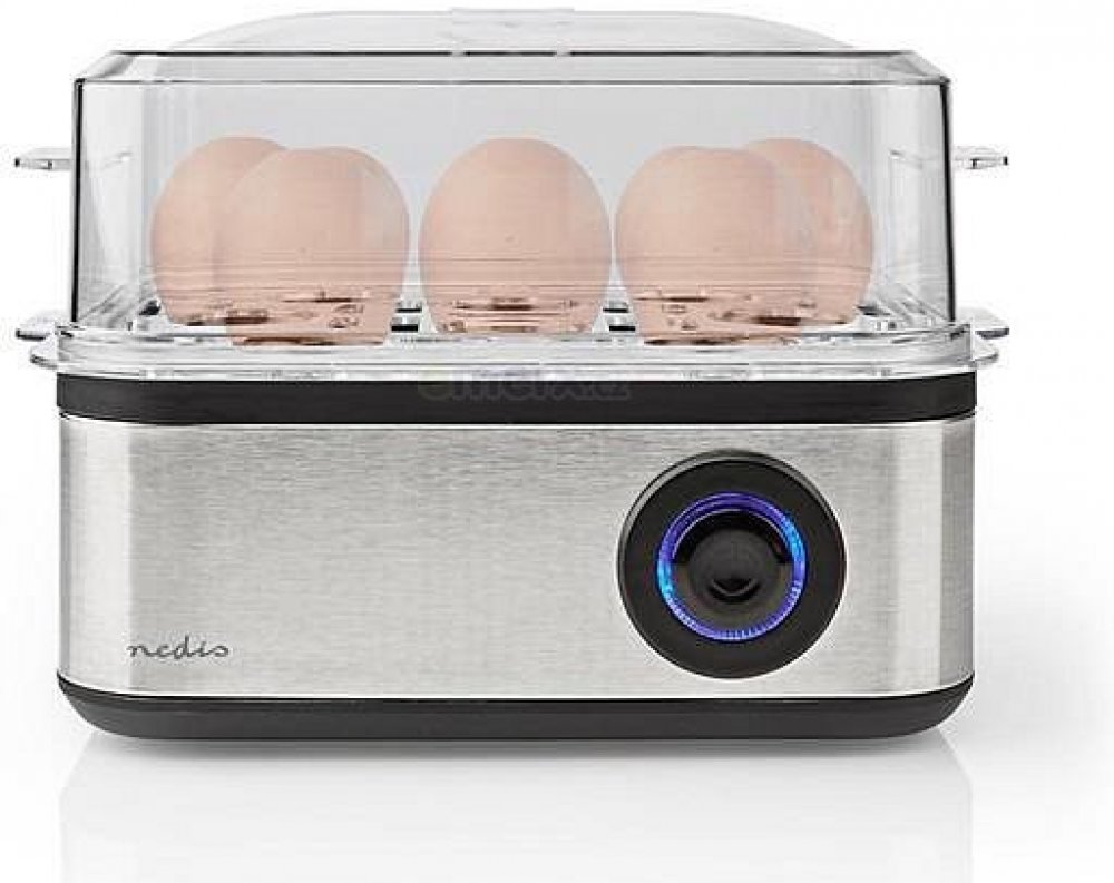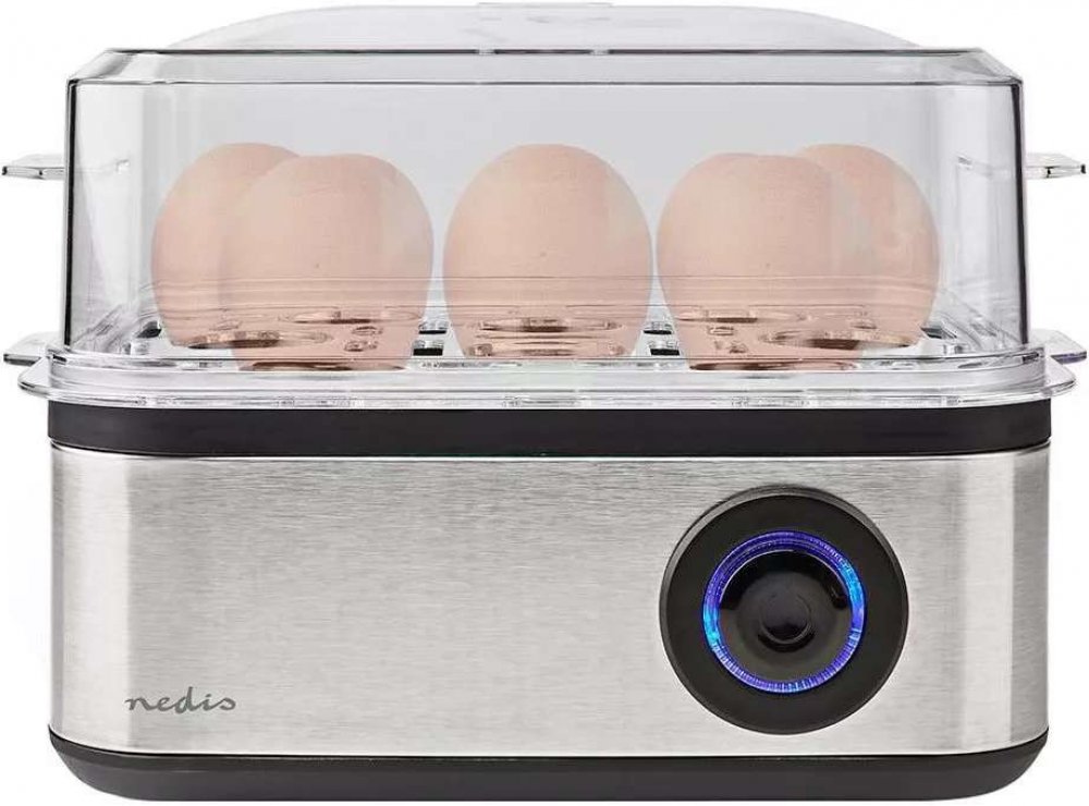 S tímto vařičem na vejce Nedis získáte za okamžik dokonale uvařená vejce na tvrdo, na měkko nebo na hniličku - dokonce i během hektického rána, nebo i když jste v kuchyni nováčkem. Stačí přidat správné množství vody pomocí dodané konvice. Do každého vejce propíchněte integrovaným propichovátkem na vejce na zadní straně konvice dírku, aby vejce během vaření nepopraskala. Ve vařiči je místo na 8 vajec. Pokud máte raději ztracená vejce, můžete použít přiložené plato na ztracená vejce a uvařit až 4 současně. Vařič na vejce sleduje čas a teplotu sám, a Vy tak během vaření můžete dělat cokoliv jiného. Když se rozezní bzučák, můžete si vejce vychutnat přesně tak, jak je máte rádi. Už žádná šedozelená barva žloutků kvůli převaření. Zahájit den vydatnou snídaní nebylo nikdy tak snadné!