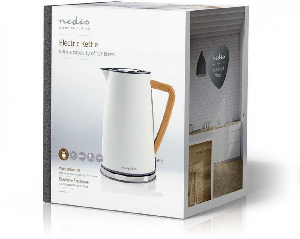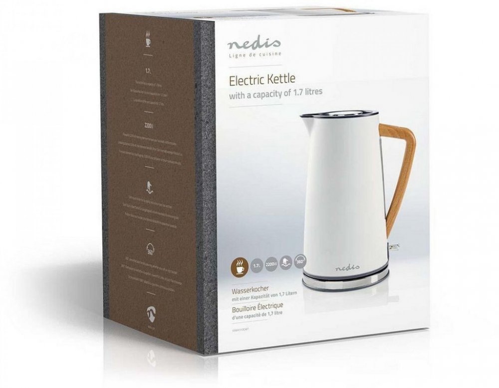 1.7 l Nedis 0.8 m nerezové nerez dřevo bílé 2200 W