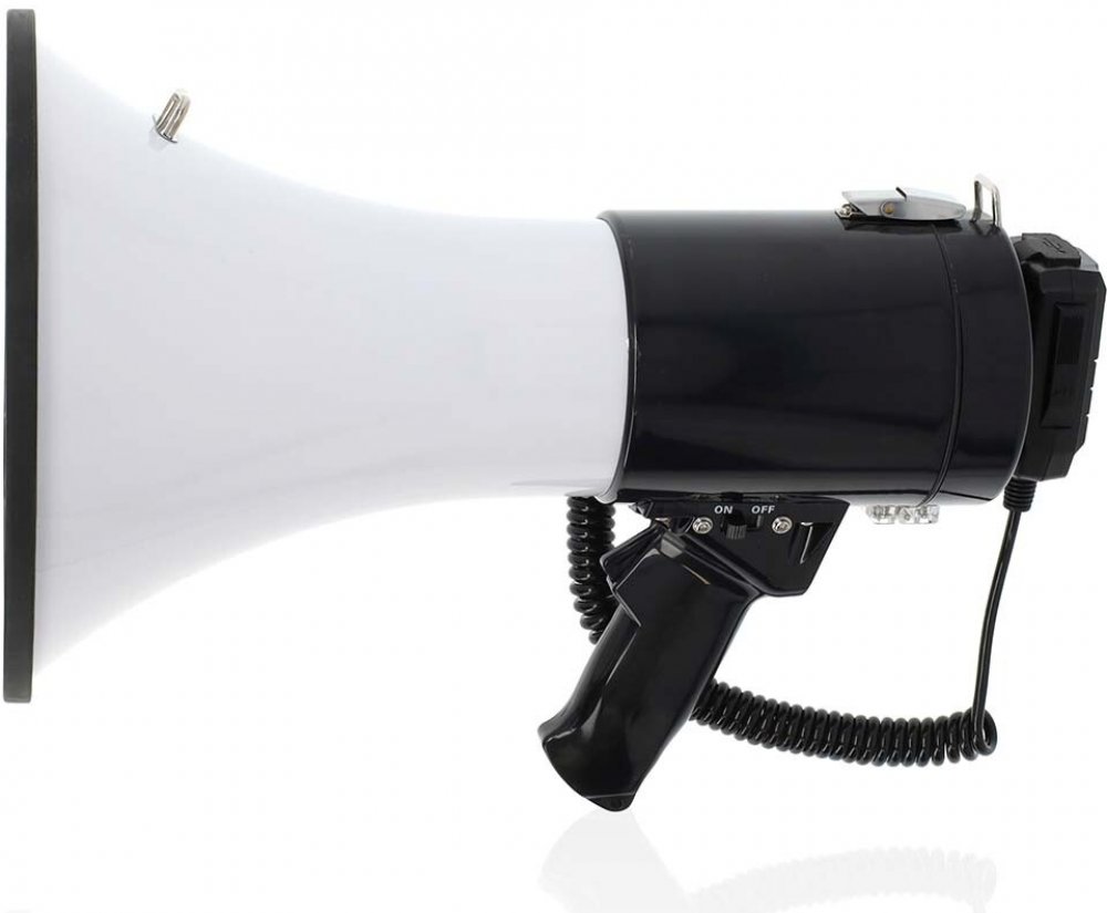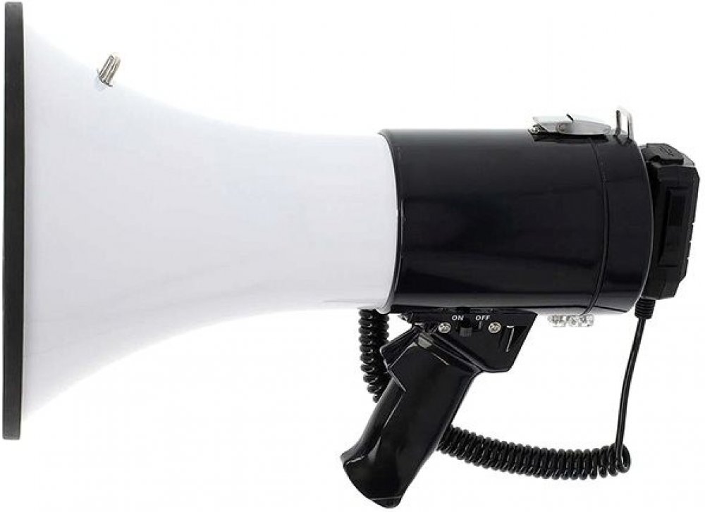 Výkonný megafon se zabudovanou sirénou a vysílacím dosahem až 1500 m spolehlivě zesílí váš hlas v případech, kdy je třeba oslovit dav lidí. 6 různých vestavěných sirén a alarmů přitáhnou okamžitou pozornost. Díky integrovanému zesilovači s výkonem 25 W dokáže vydávat zvuk o hlasitosti až 120 dB. Zajisté potěší také odnímatelný mikrofon, nastavitelný ramenní popruh, regulace hlasitosti či funkce záznamu, která umožňuje nahrát až 650 sekund dlouhý záznam. Umožňuje snadný přenos nahraných zpráv přes USB nebo streamovat vlastní zvukový obsah ze zařízení s podporou Bluetooth. O napájení se stará osm baterií C/LR14. Baterie nejsou součástí balení.
