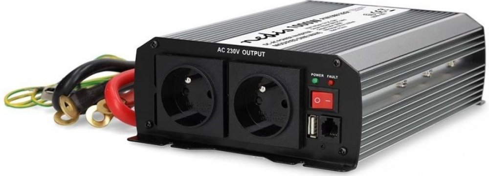 měnič napětí • výkon 1 000 W • vstupní napětí 12 V DC • výstupní napětí 230 V AC • účinnost 85 % • 2 napájecí zásuvky typu E se zemnicím kolíkem • 1× USB-A • ochrana proti přehřátí, přetížení, zkratu a přepólování • použití v nákladních autech, lodích, obytných vozech apod.