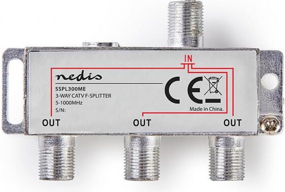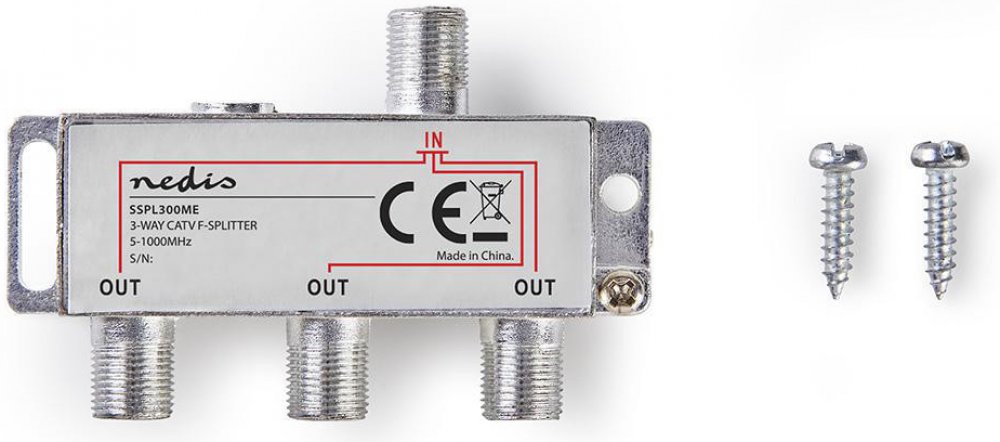 F-rozbočovač (5-1000 MHz). Zinkový obal s poniklovaním. Impedancia : 75 Ohm.