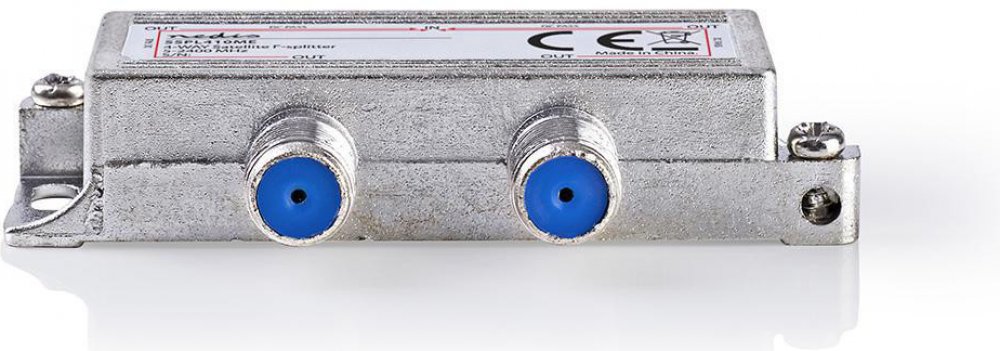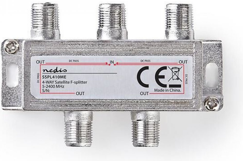 F-rozbočovač (5 - 2400 MHz) s průchozím satelitním signálem DC-power pass, v zinkovém poniklovaném pouzdru.
