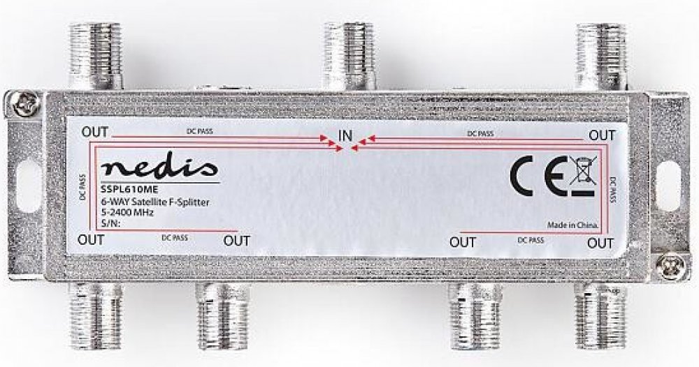 Anténní rozbočovač satelitní 6 výstupů SSPL610ME NedisFrekvenční rozsah: 5 - 2450MHzTyp konektorů: F konektoryÚtlum: 17dBPočet výstupů: 6x DC pass - průchozí ss napětíTento satelitní splitter se 6 výstupy je ideální pro rozdělení koaxiálních signálů. Umožňuje připojení až 6 televizorů nebo jiných zařízení z jednoho kabelu. Rozbočovač je vybaven pevným kovovým pouzdrem, což zaručuje jeho odolnost a dlouhou životnost.Technické parametry:• Frekvenční rozsah: 5 - 2450MHz• Útlum: 17dB• Počet výstupů: 6• Typ konektorů: F konektory• DC pass: ano