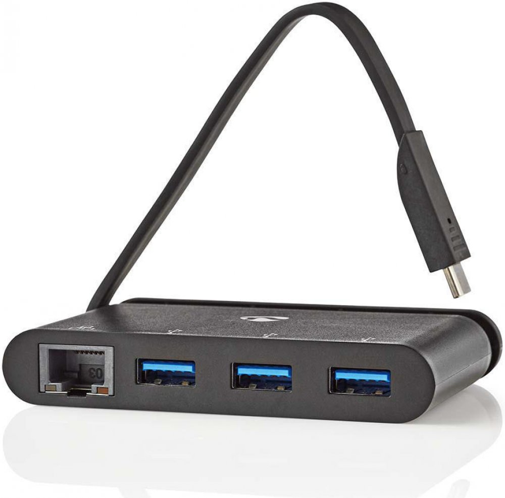 Počítačový multiadaptér,USB Type-C 3xUSB 3.0.Gigabitový Port Ethernet. Černá. K přenosnému adaptéru USB-C na 3x USB 3.0 s GB portem ethernet můžete připojit zařízení s USB-C. Podporuje přenosovou rychlost portu USB 3.0 (5 Gb/s)
