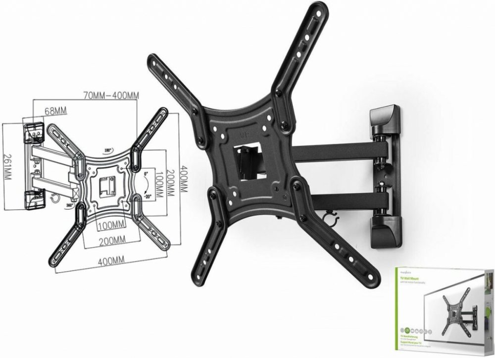 Držák na zeď pro montáž televizí s úhlopříčkou 23" až 55". Možný náklon -20° až 0° a otáčení v rozsahu 180°. Maximální zatížení tohoto držáku je 30 kg. Držák disponuje praktickým organizérem kabelů.