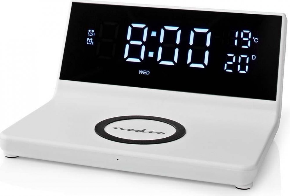 Multifunkční budík s bezdrátovým nabíjením • umožňuje rychle a bezpečně nabíjet zařízení kompatibilní s technologií Qi • stačí položit telefon na oblast nabíjení • rychlé nabíjení vyžaduje použít QC3.0 napájecí adaptér (není součástí balení) • další USB-A port • buzení • funkce opakovaného buzení – pro pár minut spánku navíc • stmi