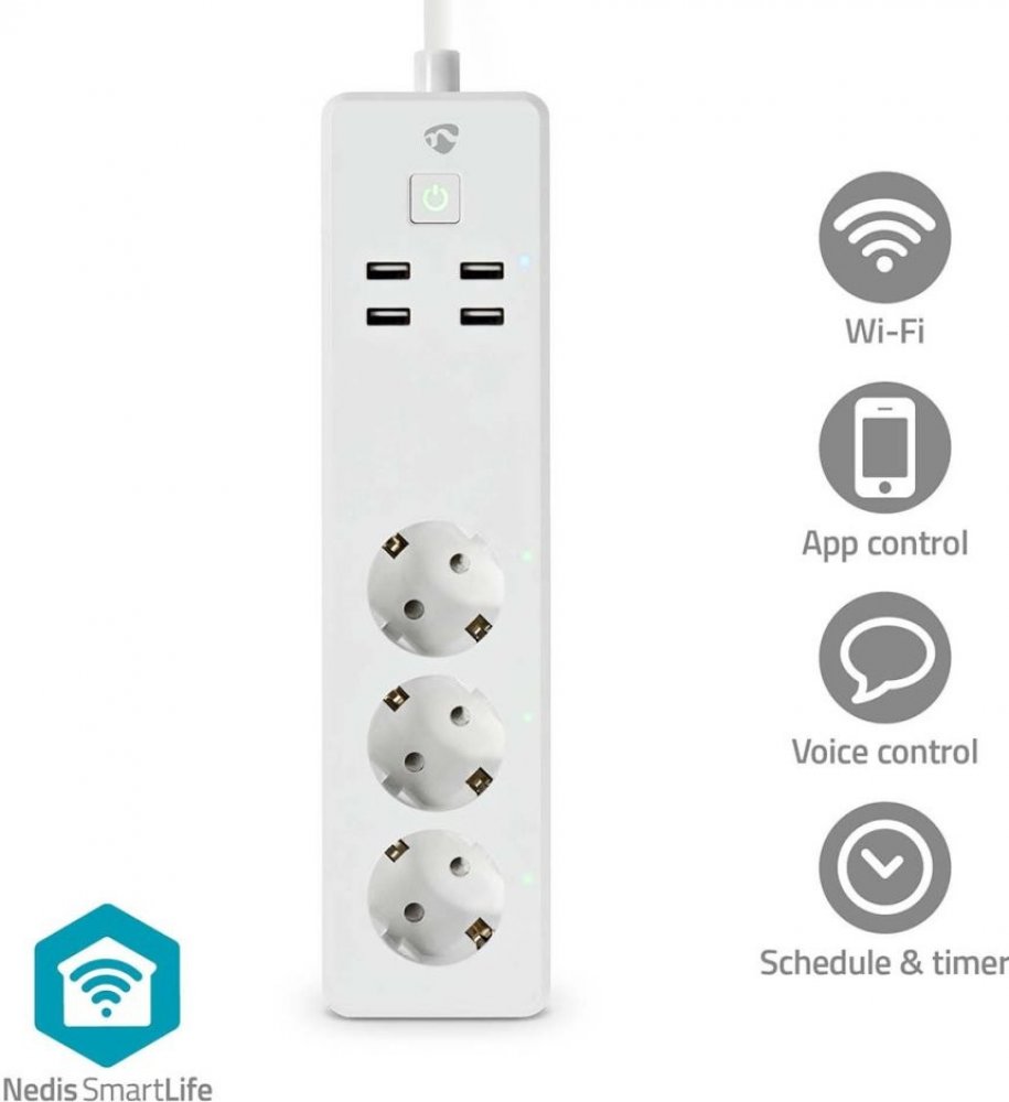 Po propojení s aplikací Nedis SmartLife umožňuje zapínat a vypínat zařízení nebo jejich použití naplánovat. Díky Amazon Alexa, Google Home a Siri lze prodlužovací přívod ovládat pomocí hlasu.