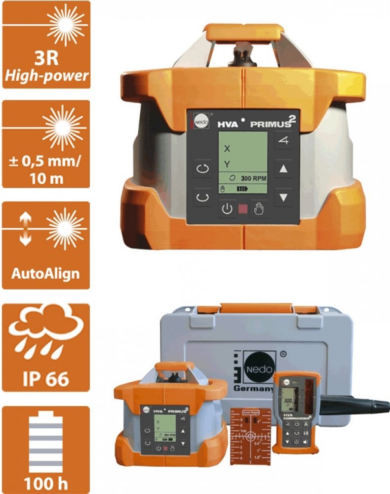 Plně automatický rotační laser s možností nastavení příčného i podélného sklonu. Přístroj je určený pro řízení zemních strojů a profesionální použití ve stavebnictví. Především jeho přesnost a stabilita je nastavena tak, aby splňovala nejtvrdší očekávání nejnáročnějších uživatelů.