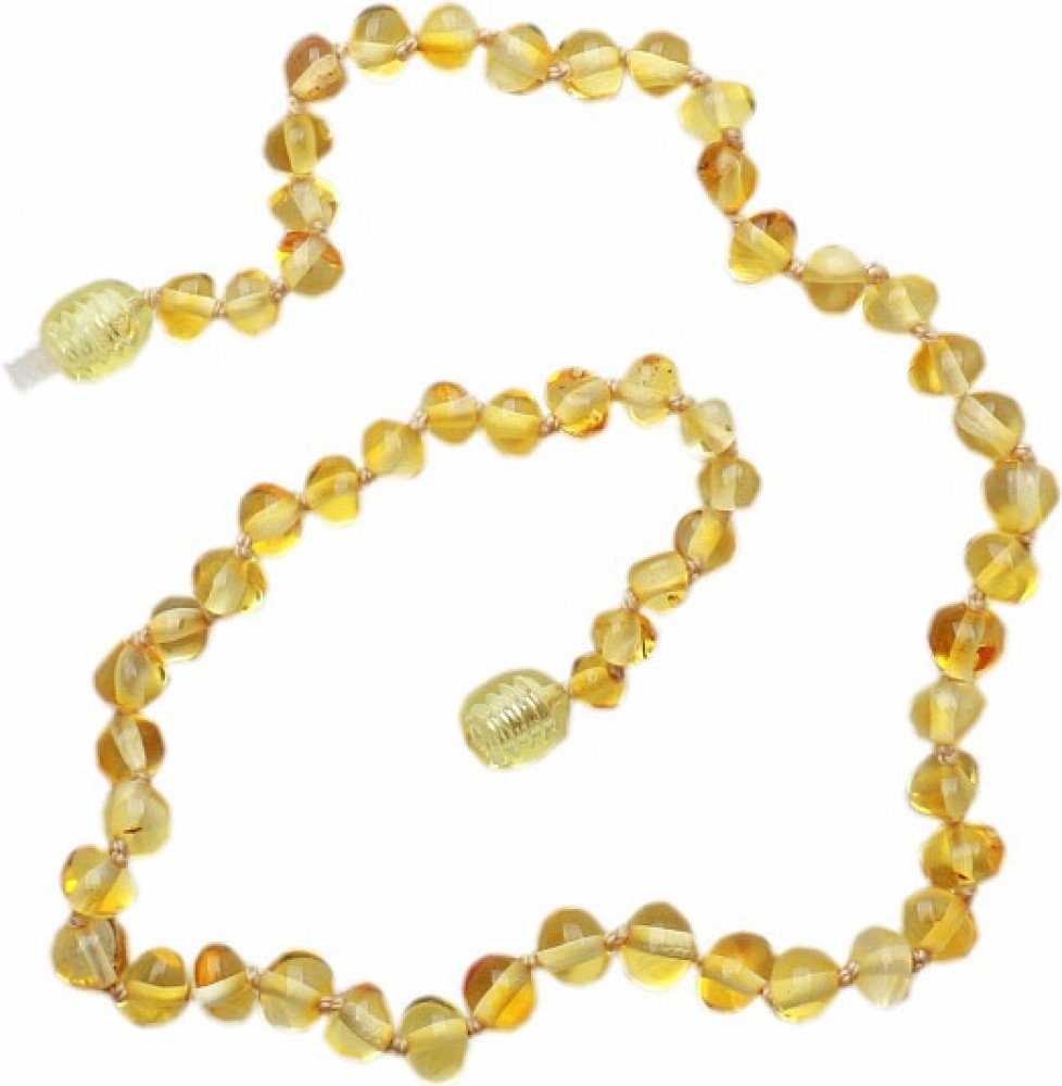Okouzlující, nepřehlédnutelné a zářivé přírodní jantarové korálky pro děti na zoubky z kulatých tzv. barokních kousků lemon jantaru nádherné barvy citrónově žluté barvy vyleštěných do vysokého lesku, jenž dává tomuto náhrdelníku třpytivý a luxusní vzhled. Výjimečně hezké korálky pro děti, velmi atraktivní tvarem jantaru a jeho zářivou, až téměř zlatou barvou. Chcete-li něco lepšího, než jsou "běžné" dětské korálky, potom stojí za to, vzít do úvahy právě tyto výjimečné korálky.