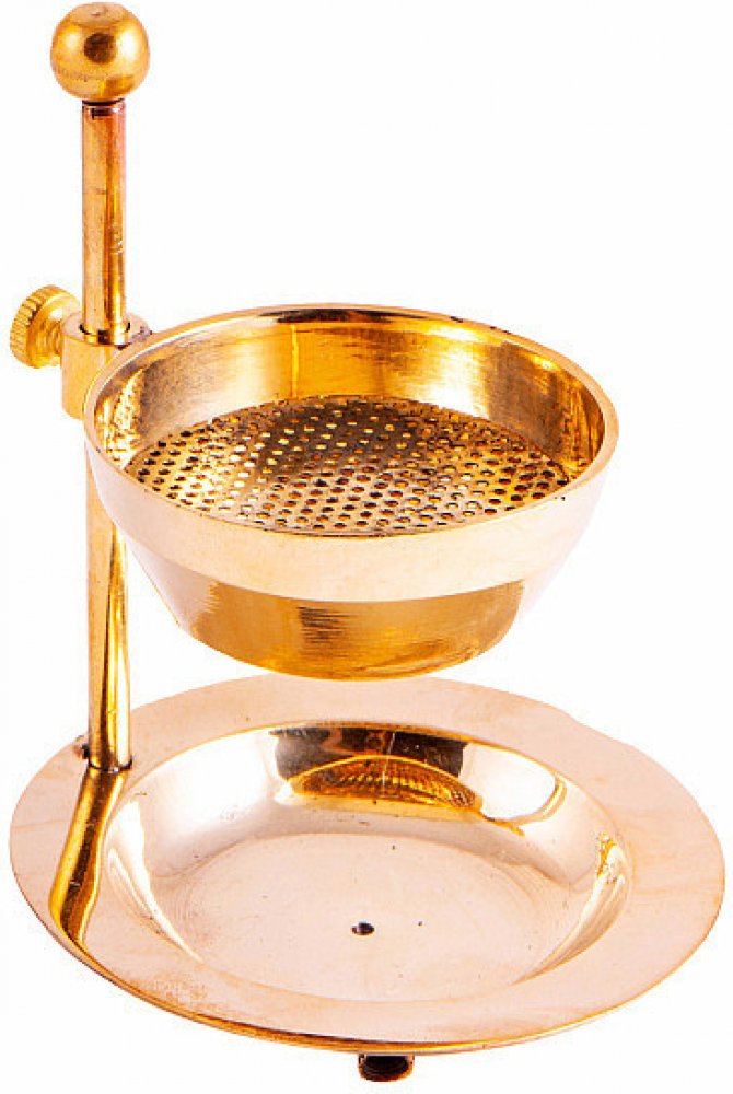 Mosazná kadidelnice Mitra na čajovou svíčku, s nastavitelnou výškou sítka. Dopřejte si magickou sílu a očistu vykuřovacích rituálů, relaxujte, meditujte, oddejte se působení oblíbené vůně a nechte uklidnit vaši mysl. Kadidelnice k pálení všech druhů vykuřovadel, tj. bylin, vonných dřev, vykuřovacích směsí. Kadidelnici lze použít i jako krásnou bytovou dekoraci. Materiál: mosaz. Velikost: výška cca 10 cm. Ilustrativní vyobrazení.