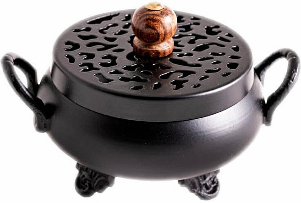 Černá železná klasická kadidelnice pro vaše oblíbená vykuřovadla. Dopřejte si magickou sílu a očistu vykuřovacích rituálů, relaxujte, meditujte, oddejte se působení oblíbené vůně a nechte uklidnit vaši mysl. Průměr kadidelnice cca 11 cm, výška cca 10 cm, materiál: železo. Ilustrativní vyobrazení.