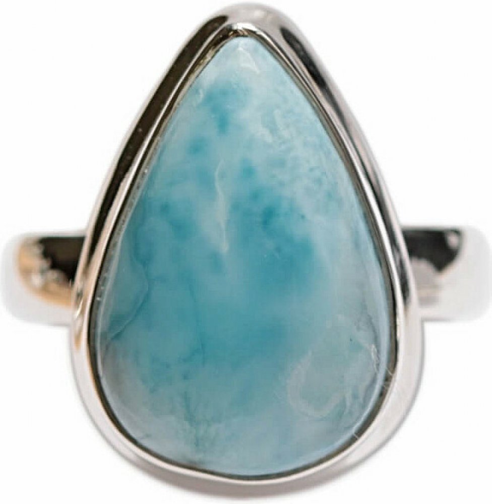 Elegatní prsten stříbro s krásným a velmi kvalitním kabošonem larimaru, jenž připomíná hru slunečních paprsků na hladině moře. Kámen larimaru je pečlivě vybrán se zřetelně modrým vybarvením a kresbou. Velikost larimaru cca 1,8 cm. Ag 925. Kupujete přímo vyobrazený šperk.