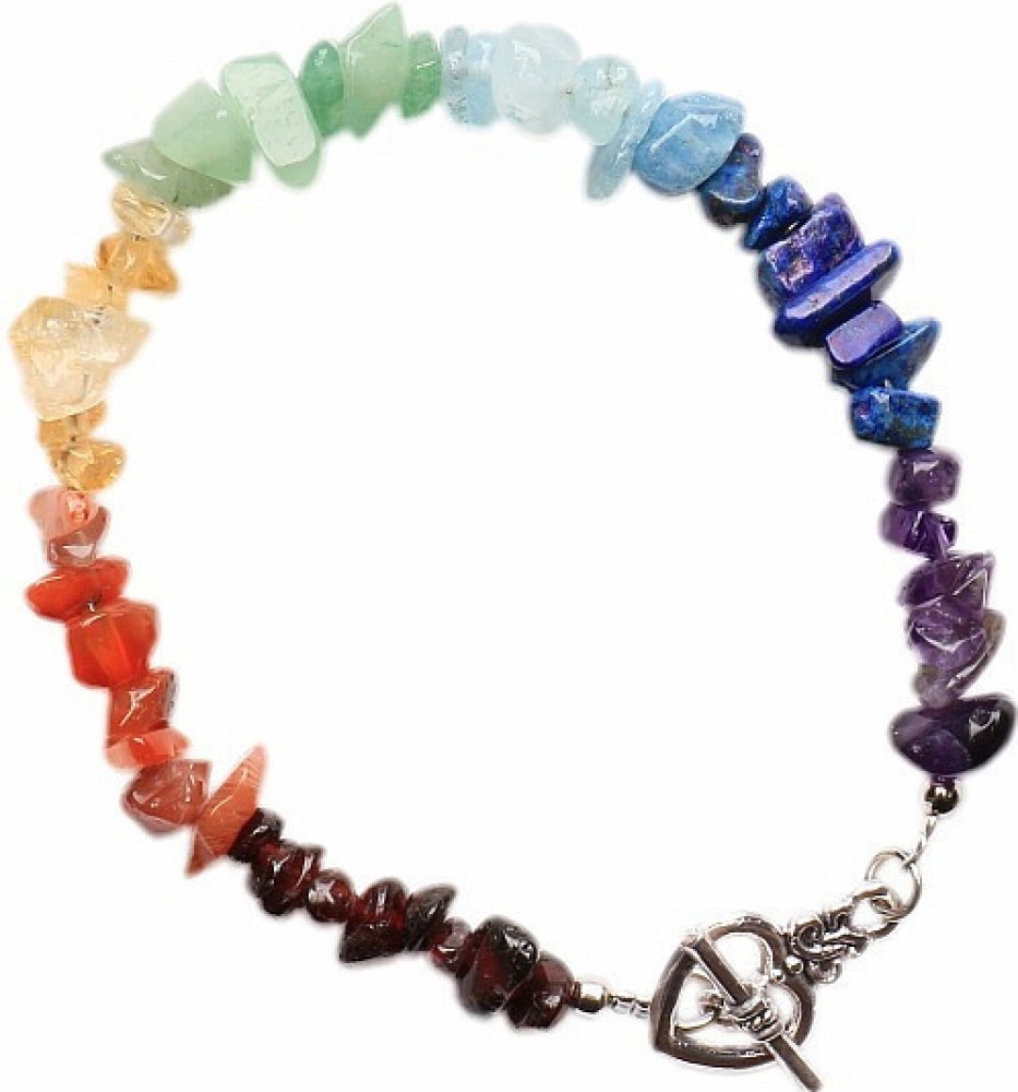 V tomto půvabném šperku je sedm polodrahokamů - rudý granát, oranžový karneol, žlutý citrín, zelený avanturín, světle-modrý chalcedon, tmavě-modrý lapis lazuli a levandulově fialový ametyst, Vkteré jsou seřazeny barevně tak, jak jdou v našem těle jednotlivé čakry za sebou. Od Kořenové až po Korunní čakru. Drahé kameny čistí a nabíjí jednotlivé čakry a díky tomu lze dosáhnout maximální harmonizace celého energetického systému vašeho organismu.