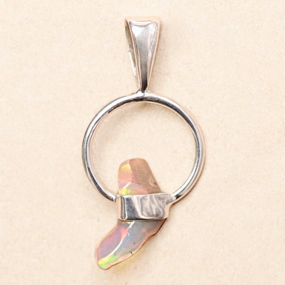 Moderní a elegantní stříbrný přívěsek se surovým etiopským opálem ve tvaru zubu, s krásnou hrou barev. Ag 925. Působivý a elegantní šperk, od pohledu navozující radost a pocity harmonie. Etiopské opály oproti australským opálům doslova hýří až neonově zářivými odlesky barev. Ačkoliv na první pohled na to nevypadají, ohňostroj barev, který z opálu v tomto přívěsku vytryskne při každém dopadu světla...