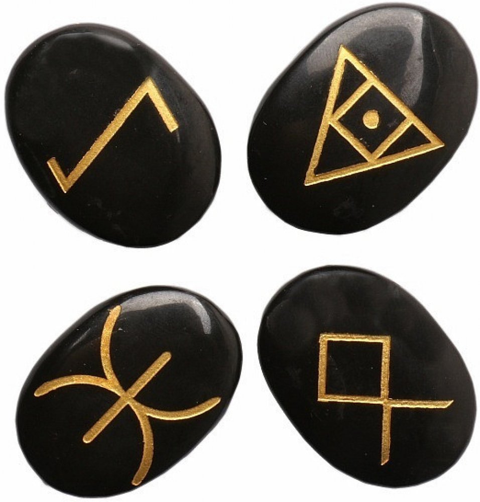 Nefertitis Wicca sada kamenů bazalt černý s keltskými symboly NF10812 - 4 x cca 3,5 cm
