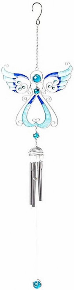 Atraktivní zvonkohra s modrým andělem a 4 trubicemi. Nechte zvonkohru rozehrát, zatímco budete relaxovat a odpočívat.Zvonkohra je vyrobena z barevného plastu a kovu. Celková délka zvonkohry je cca 70 cm, rozměry anděla: cca 16 cm výška, rozpětí křídel cca 20 cm. Ilustrativní vyobrazení.