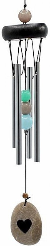 Větrná kovová zvonkohra se čtyřmi zvukovými trubicemi, kombinovaná s přírodním dřevem a kamenem se symbolem srdce. Srdíčko přináší do života lásku, štěstí a harmonii v partnerském vztahu. Vytvořte si pomocí této krásné zvonkohry melodii, při které se budete cítit uvolnění, bez stresu a budete mít pocit harmonie a uvolněné mysli. Chcete nebo potřebujete podpořit pozitivní energii? Pak je pro vás zvonkohra tou pravou volbou.Zvonkohra je ozdobena barevnými plastovými korálky. Celková délka zvonkohry je cca 35 cm.