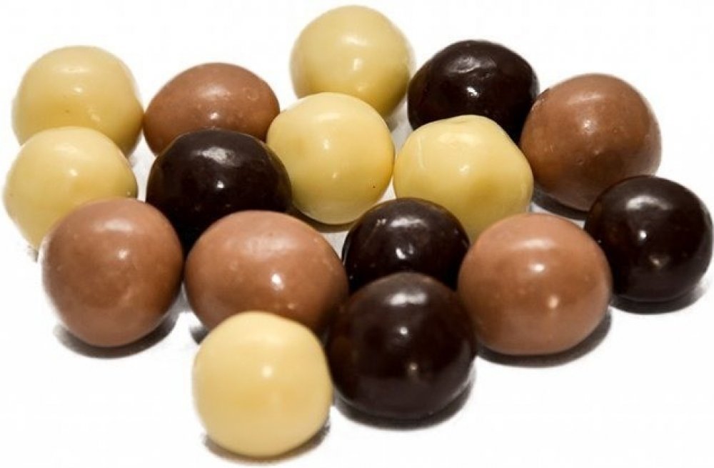 Složení: Lísková jádra, cukr, hořká čokoláda [cukr, kakaová hmota, kakaové máslo, rostlinné tuky (palmový olej, olej z máslovníku, Sal, olej z jader manga), MLÉČNÝ TUK, emulgátory: slunečnicový lecitin a polyglycerylpolyricinoleát; přírodní vanilkové aroma], poleva s jogurtovou příchutí {cukr, částečně ztužený rostlinný tuk [palmový, sójový (plně rafinovaný), řepkový], sušená SYROVÁTKA, sušený JOGURT (MLÉKO, jogurtová kultura), sušené odstředěné MLÉKO, regulátor kyselosti: kyselina citronová, emulgátory: slunečnicový lecitin a polyglycerylpolyricinoleát; přírodní vanilkové aroma}, poleva s karamelovou příchutí {cukr, částečně ztužený rostlinný tuk [palmový, sójový (plně rafinovaný)], sušená SYROVÁTKA, kakaový prášek, sušené odstředěné MLÉKO, emulgátor: slunečnicový lecitin; aroma, přírodní vanilkové aroma}, maltodextrin, lešticí směs (tapiokový škrob, cukr, lešticí látka: šelak; kokosový olej, kyselina: kyselina citronová, konzervant: kyselina sorbová), kakaový prášek.