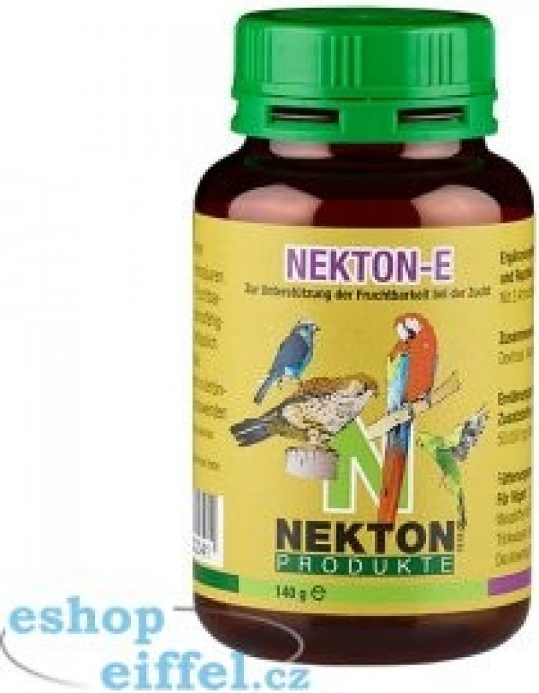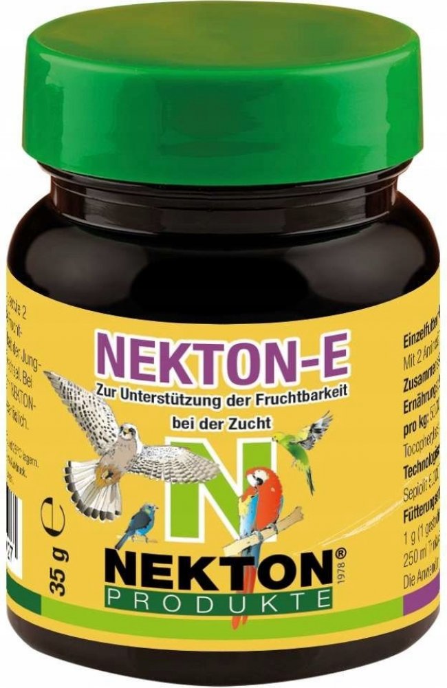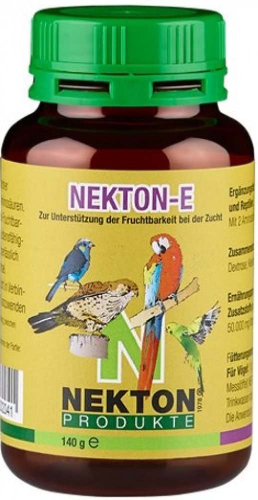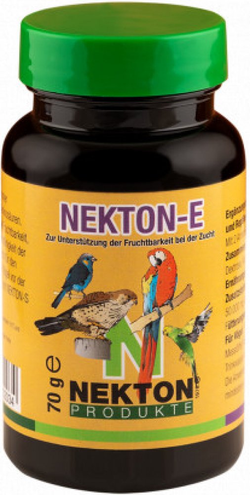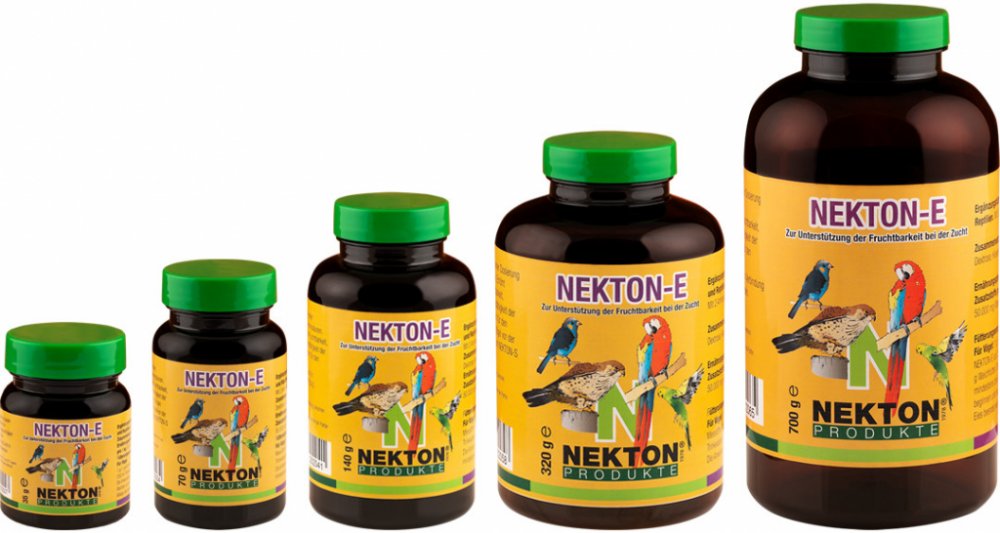 NEKTON-E v podobě rozpustného prášku poskytuje chovatelům ideální formu pro dávkování. Stačí jej přidávat do měkkého krmiva nebo vody. Po přidání do studené vody může NEKTON-E tvořit mléčnou, kalnou substanci. Toto je naprosto v pořádku, stejně tak jako usazeniny na okrajích nádoby. Jedná se pouze o substanci, nesoucí přídavné látky. Vitaminy jsou kompletně rozpustné. Ideální je kombinace s NEKTON S.Používejte NEKTON E cca 3 týdny před začátkem chovné sezóny a přestaňte jej ptákům nabízet, jakmile se objeví první snůšky.
